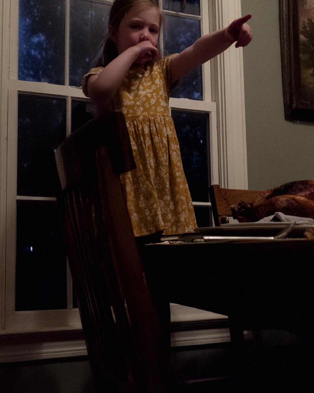 I was about to carve the turkey after everyone took their seats. Peter stood ready beside me to dish out slices when, out of nowhere, Emma stood on her chair. Her tiny frame somehow commanded the entire room’s attention.