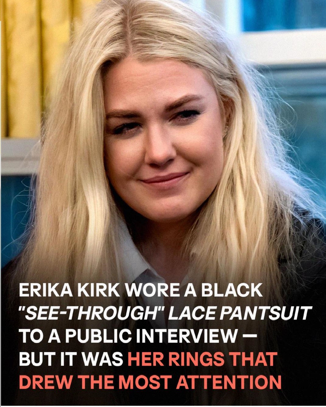 “Erika Kirk is wearing a full on see through lace pant suit btw,” another declared.