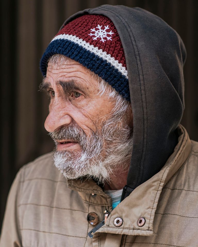 An old man sat hunched outside the café, soaked to the bone. His coat hung off him, his tiny dog shivered under a piece of newspaper, and he stared at nothing.