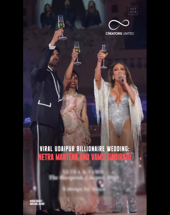 Lopez performed over the weekend for newlyweds Netra Mantena and Vamsi Gadiraju as part of a multi-day, no-expense-spared wedding celebration.