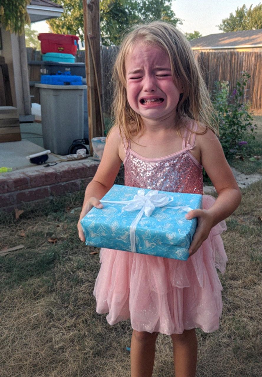 My little girl’s cheeks were blotchy and wet, her eyes red and swollen. Her sparkly dress had grass stains along the hem.