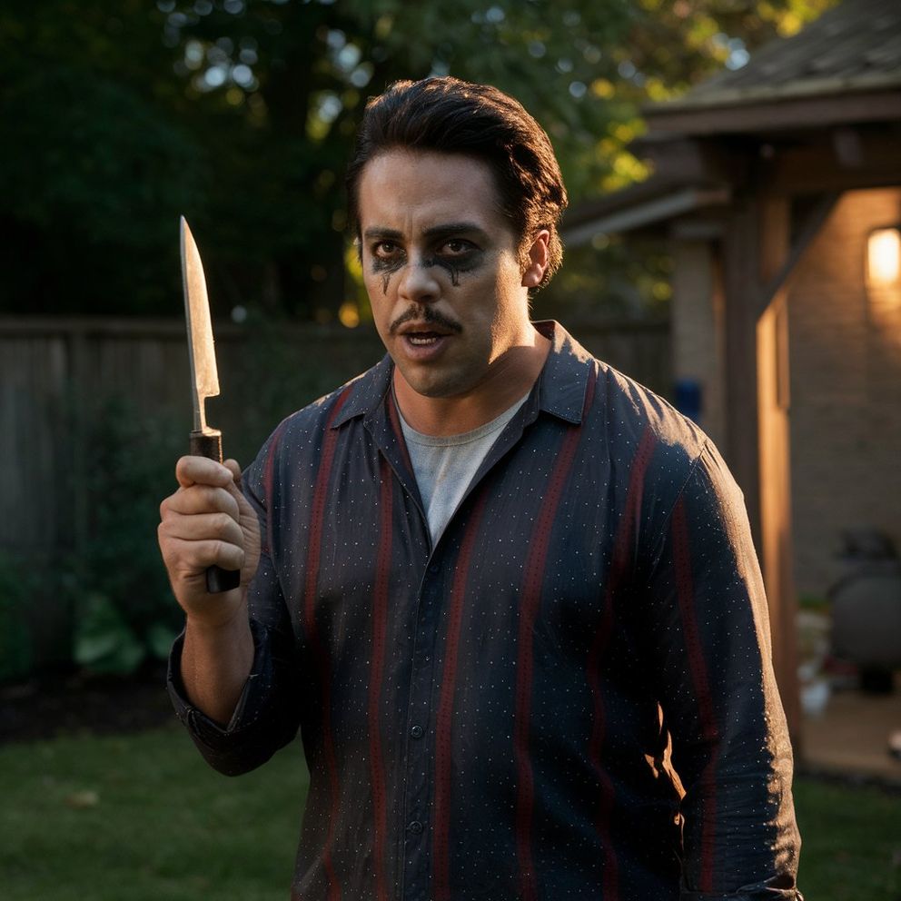 Miguel brandished a rubber knife covered in ketchup. “Arrr, she had it coming!”